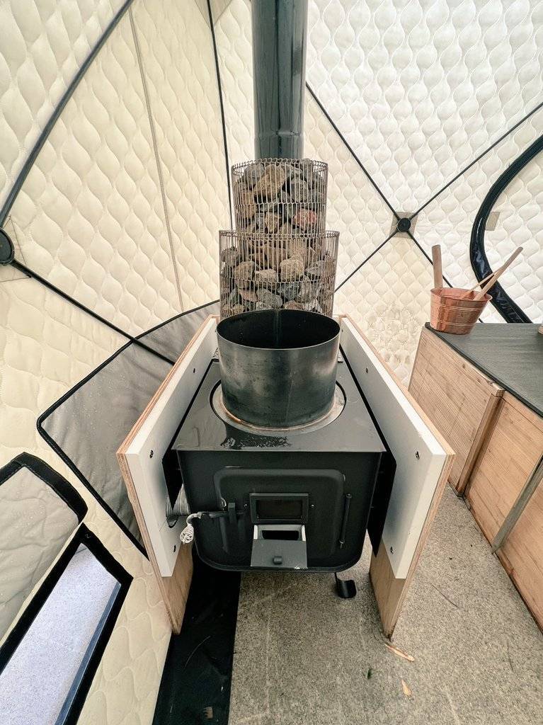 ストーブガードはテントサウナにおいて、ストーブ接触によるやけど事故を防ぎます。さらに、ストーブから発せられる過度な輻射熱を遮断し、快適なサウナに貢献します。